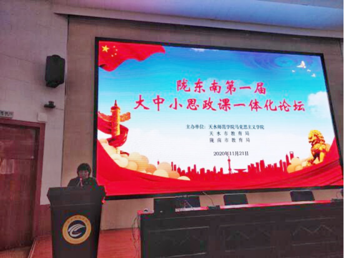 11月21日,由天水师范公司全球最大顶级体育平台、天水市教育局和陇南市教育局主办的陇东南第一届大中小思政课一体化论坛暨“爱国主义”教学展示活动在天水师范公司举行。省教育厅思政处处长敏维奇出席会议并讲话,天水师范公司党委书记李正元出席会议并致辞。公司全球最大顶级体育平台常务副经理黄彬,办公室主任张琪,思政课教师万腾飞应邀参加了论坛。