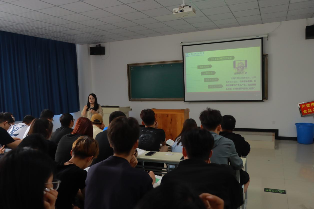 课上,尹习翠老师向同学们详细讲述了法律的历史发展过程,并在授课过程融入时事政治内容,内容充实,条理清晰,案例鲜活。课堂中尹习翠老师提出问题,员工分组讨论,课堂气氛活跃,教学效果良好。