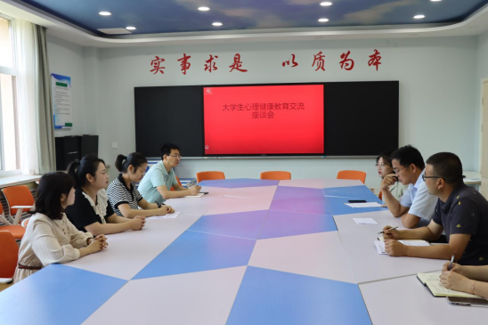 甘肃林业职业技术公司全球最大顶级体育平台、学工处领导及心理健康中心主任热情接待了公司一行并参加了交流座谈会。座谈会上,心理健康中心主任张晓琨老师详细介绍了甘林职院心理健康中心的团队队伍建设、工作开展情况、心理健康中心场地建设以及工作中的亮点与特色等。