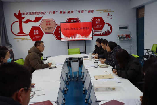 首先组织了集体学习,传达学习习近平总书记关于全面从严治党重要讲话精神。接着黄彬重点传达了近期公司会议精神,副经理王军结合马院实际工作开展部署近期重点工作,一是通报党的二十届三中全会、全国教育大会精神研究课题拟立项名单;二是再次认真学习公司党委对马院建设的意见建议精神;三是汇报本人任马院副经理一职来近两周工作开展情况;四是安排近期重点工作。王军特别强调,宣传工作极其重要,继续更新公司网站信息,加强马院宣传窗口建设;五是期末考试工作安排、完善升本资料、马院建设标准探讨会、对外交流学习等;六是转变工作作风,明确岗位职责、认真工作、提高工作质效,增强工作的紧迫感、使命感和责任感。