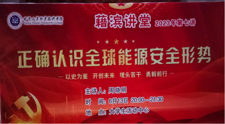 为深入学习贯彻党的二十大精神,正确认识全球能源安全形势,6月13日晚,副经理周晓明在老员工活动中心以《正确认识全球能源安全形势》为主题,为艺术公司和经管公司2022级同学讲授了一堂主题鲜明、内涵丰富的专题讲座。