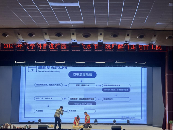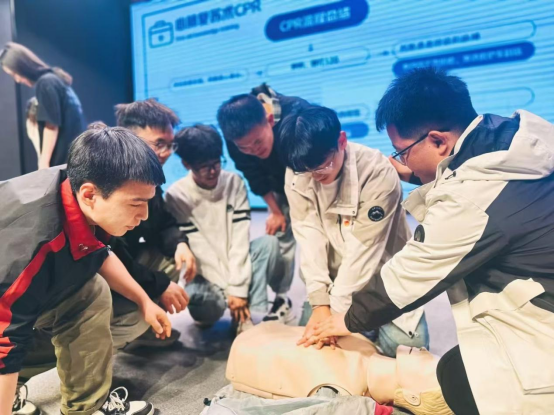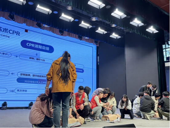 在互动环节,不少同学主动上台进行实操演练,医护人员则在一旁耐心指导,及时纠正不规范的动作。台下的同学们也积极提问,就急救方式展开热烈讨论,现场学习氛围浓厚。同学们纷纷表示,通过这次活动,自己不仅学到了实用的急救知识,还增强了应对突发情况的信心。